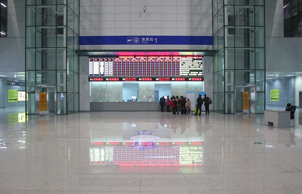 鄭機城鐵機場站候車大廳,空蕩的大廳內只有少數(shù)乘客