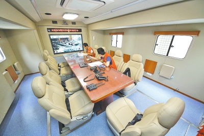 “超級(jí)地震車(chē)”指揮間可容納15人開(kāi)會(huì)