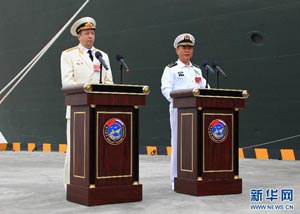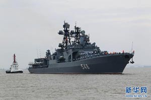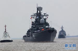 當日,參加中俄“海上聯(lián)合—2014”軍事演習的俄方艦艇陸續(xù)駛抵上海某軍港。中俄兩國海軍互鳴禮炮,中方為來訪的俄艦舉行隆重歡迎儀式。俄羅斯太平洋艦隊旗艦“瓦良格”號導彈巡洋艦駛入軍港時,參加歡迎儀式的軍樂隊奏響歡迎曲。隨后,“快速”號驅逐艦、“潘捷列耶夫海軍上將”號大型反潛艦、“伊利姆”號中型海洋油船、“涅維爾斯科伊海軍上將”號大型登陸艦,“卡拉爾”號海洋拖船陸續(xù)駛入港口。這次聯(lián)合軍事演習,中俄海軍都派出了主戰(zhàn)艦艇參加。中方參演兵力包括導彈驅逐艦、導彈護衛(wèi)艦、綜合補給艦以及導彈艇等水面艦艇8艘、潛艇2艘、固定翼飛機9架。俄方參演兵力包括巡洋艦、反潛艦、驅逐艦、登陸艦、油船和海洋拖船等水面艦艇6艘。此外,為執(zhí)行海上聯(lián)合解救被劫持船只、護航等特殊任務,雙方還派出艦載直升機、特戰(zhàn)分隊等兵力參加此次演習。新華社記者 查春明攝