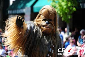 當?shù)貢r間2014年5月17日,美國俄勒岡州麥克梅南明,第15屆麥克梅南明UFO節(jié)大游行。該節(jié)日為期4天,是為了紀念1950年Evelyn和Paul Trent目睹并拍下了一飛碟形狀的物體在他們農場上空盤旋的照片。圖片來源:Alex Milan Tracy/東方IC