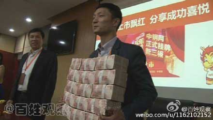 昨天,鄭州某電商公司召開員工“分紅”大會。老板現(xiàn)場拿出1400萬現(xiàn)金,用來獎(jiǎng)勵(lì)業(yè)績突出的員工。據(jù)說,一捆錢是人民幣10萬,當(dāng)天不少員工都帶著麻袋到現(xiàn)場領(lǐng)錢?。。。?!小編已經(jīng)不知道該說什么,弱弱的問一句,貴公司還招人嗎?