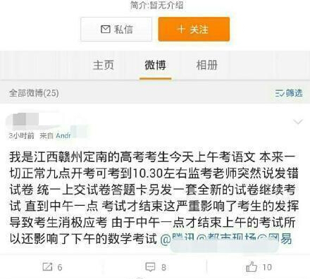 2、贛州定南4個高考考場發(fā)錯試卷