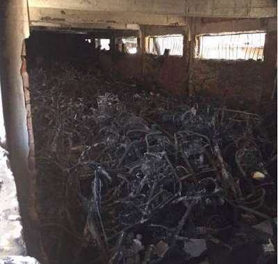 今天凌晨1點半左右,鄭州二七區(qū)新浦街5號院的電動車棚突發(fā)火災(zāi),近百輛電動車被燒成骨架。據(jù)目擊者稱,電動車充電時爆炸引發(fā)火災(zāi)。小區(qū)居民稱,小區(qū)消防通道不暢,消防栓竟然沒有一滴水,耽誤了最佳撲救時間。