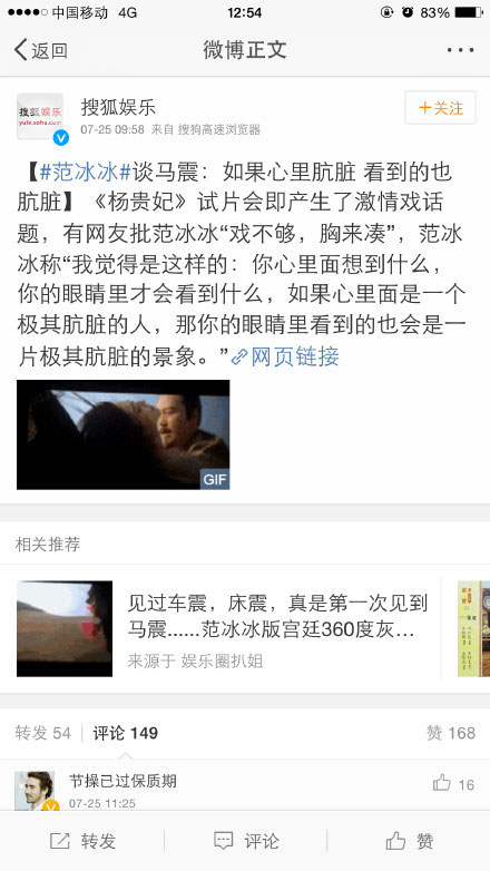 10、范冰冰回應(yīng)馬震:內(nèi)心骯臟,眼睛里看見的也是骯臟