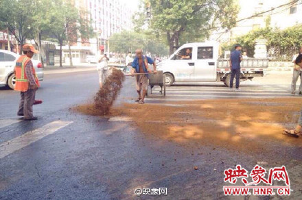 5、街道被大片油污覆蓋 數(shù)十名市民路過摔倒