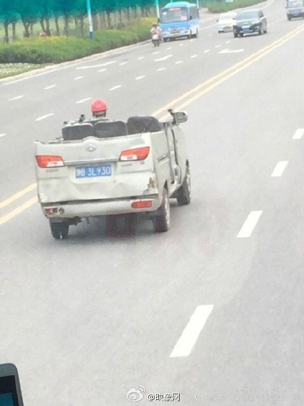 2、面包車(chē)改敞篷車(chē) 司機(jī)戴頭盔上路