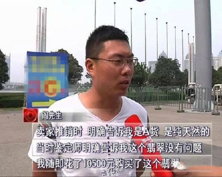 鄭州市民閻先生花了10500元在珠寶展銷(xiāo)會(huì)上買(mǎi)了一塊號(hào)稱(chēng)A貨的翡翠,然而,鑒定結(jié)果卻顯示他買(mǎi)的其實(shí)是劣質(zhì)的B貨,也就是強(qiáng)酸腐蝕后人工加工的翡翠。目前,該展位賣(mài)家不見(jiàn)蹤影,主辦方也稱(chēng)自己無(wú)責(zé)任。