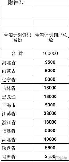 在調出計劃中,最多的是湖北、江蘇兩省,分別是4萬個和3.8萬個。
