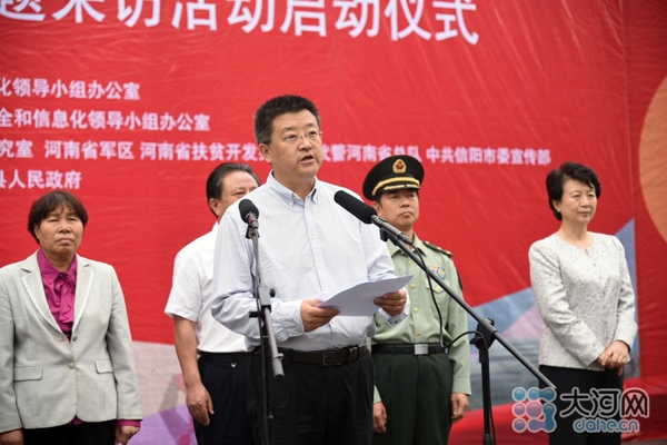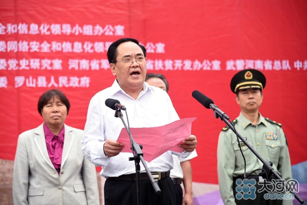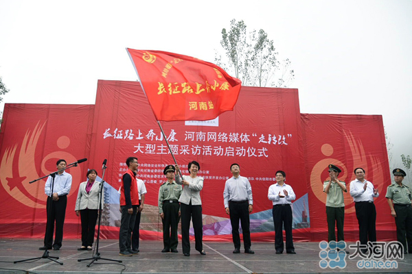 大河網(wǎng)訊(河南日報記者 胡巨成 大河網(wǎng)記者 宋向樂 范昭 通訊員劉宏冰)9月26日,按照中央網(wǎng)信辦統(tǒng)一部署,“長征路上奔小康”河南網(wǎng)絡(luò)媒體“走轉(zhuǎn)改”主題采訪活動在紅25軍長征出發(fā)地——羅山縣何家沖啟動。省委常委、宣傳部長趙素萍出席啟動儀式為采訪團授旗,并勉勵大家多走多看,發(fā)揚長征精神,講好長征故事,將精彩報道奉獻給廣大網(wǎng)友。中央網(wǎng)信辦網(wǎng)絡(luò)新聞信息傳播局副局長劉沖出席啟動儀式并講話,省委宣傳部副部長、省委網(wǎng)信辦主任何彧致辭,省軍區(qū)副政委兼政治部主任冷志義等出席啟動儀式。