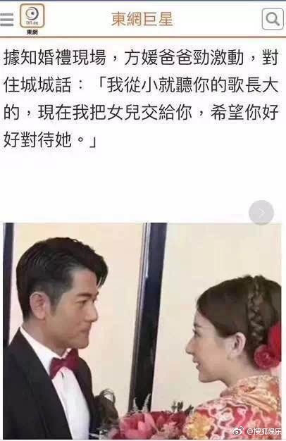 【方媛爸爸叮囑#郭富城#:我從小聽你歌長(zhǎng)大】據(jù)港媒報(bào)道,#郭富城方媛婚宴#現(xiàn)場(chǎng),方媛爸爸很激動(dòng)地對(duì)郭富城說:“我從小就聽你的歌長(zhǎng)大的,現(xiàn)在我把女兒交給你,希望你好好對(duì)待她?!?/p>