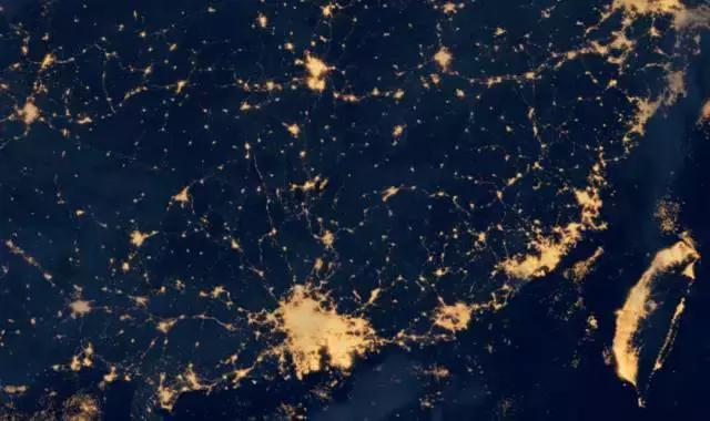 先來看珠三角,珠三角的城市燈光幾乎融為一體,從廣州到深圳再到香港澳門,城市的地理邊界基本消失。
