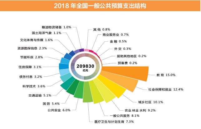 國家賬本中,最大的賬本就是一般公共預(yù)算。2018年,全國一般公共預(yù)算收入183177億元,增長6.1%。加上使用結(jié)轉(zhuǎn)結(jié)余和調(diào)入資金2853億元,收入總量為186030億元。全國一般公共預(yù)算支出209830億元,扣除上年地方使用結(jié)轉(zhuǎn)結(jié)余及調(diào)入資金后增長7.6%。