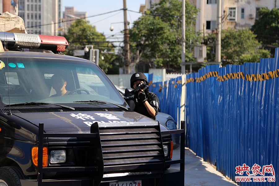 此時(shí),治安、特警等警鐘負(fù)責(zé)人迅速成立現(xiàn)場(chǎng)指揮小組,開展行動(dòng)?,F(xiàn)場(chǎng)的2名狙擊手在不遠(yuǎn)處待命。其他特警小組分別從地上、樓頂向“暴徒”靠近,治安排爆部、刑偵偵查等力量做好準(zhǔn)備。