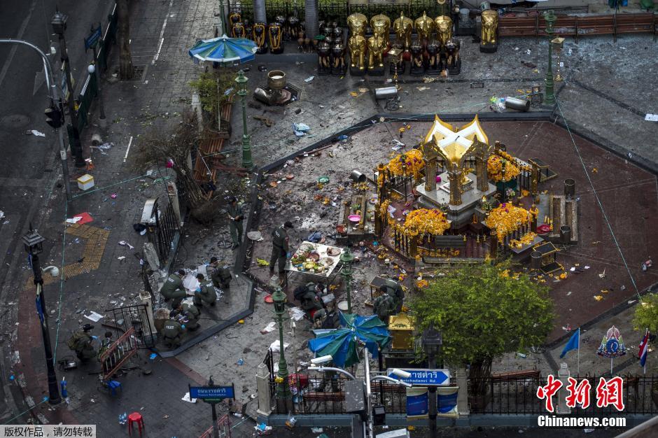 四面佛附近區(qū)域一片狼藉。泰國(guó)總理巴育稱,這起在宗教圣地發(fā)生的炸彈爆炸事件是泰國(guó)遭受的“有史以來(lái)最嚴(yán)重襲擊”。