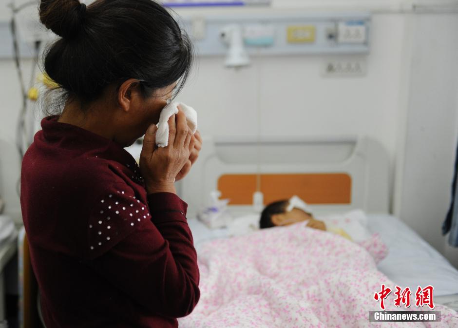 10月13日,12歲的朱某正在吉林大學第二醫(yī)院接受治療。據(jù)其家人介紹,10月11日,朱某獨自在家,遭同村村民王某挖出雙眼,行兇者還點燃了他家的房子,朱某靠裝死逃過一劫。王某事后自殺。目前雖經(jīng)手術(shù)治療,但朱某右眼視力已無恢復的可能,左眼亦不樂觀。警方正對此案進行調(diào)查。中新社記者 張瑤 攝