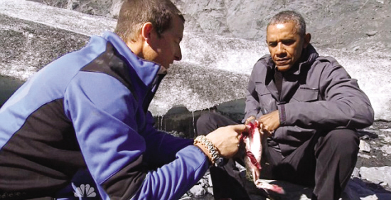 原標(biāo)題:奧巴馬野外求生真人秀吞下三文魚 拒飲自己尿液