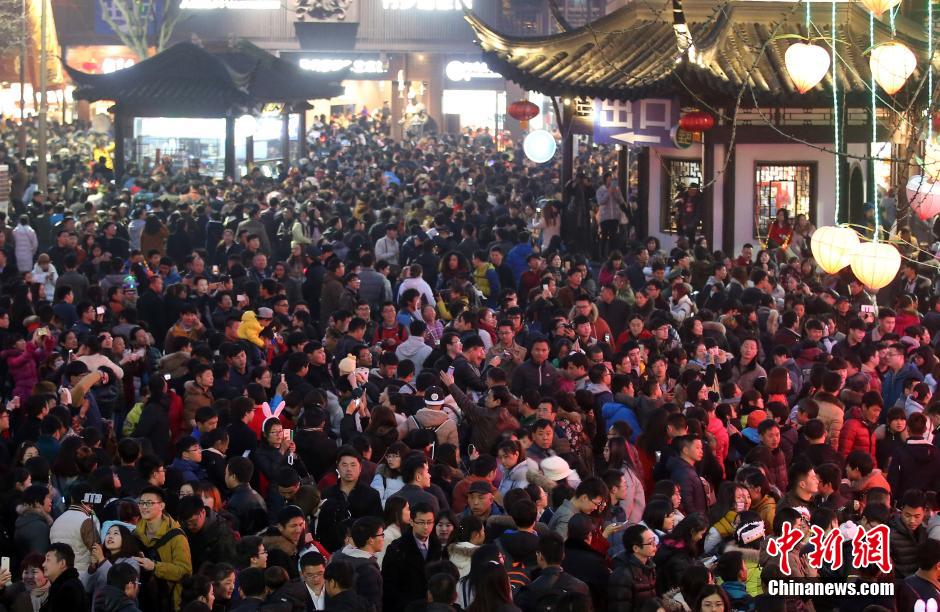 2月22日晚,南京夫子廟廣場上人山人海。當(dāng)日是元宵節(jié),數(shù)十萬市民和游客涌進(jìn)南京夫子廟景區(qū)內(nèi)欣賞秦淮燈會,瞬間開啟“人從眾”模式。秦淮燈會又稱“金陵燈會”,是流傳于南京地區(qū)的特色民俗文化活動,主要在每年的春節(jié)至元宵節(jié)期間舉行。 中新社記者 泱波 攝