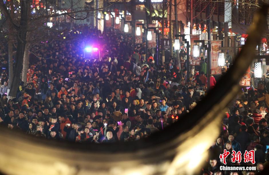 2月22日晚,南京警方在監(jiān)控涌進(jìn)夫子廟廣場上的人流。 中新社記者 泱波 攝