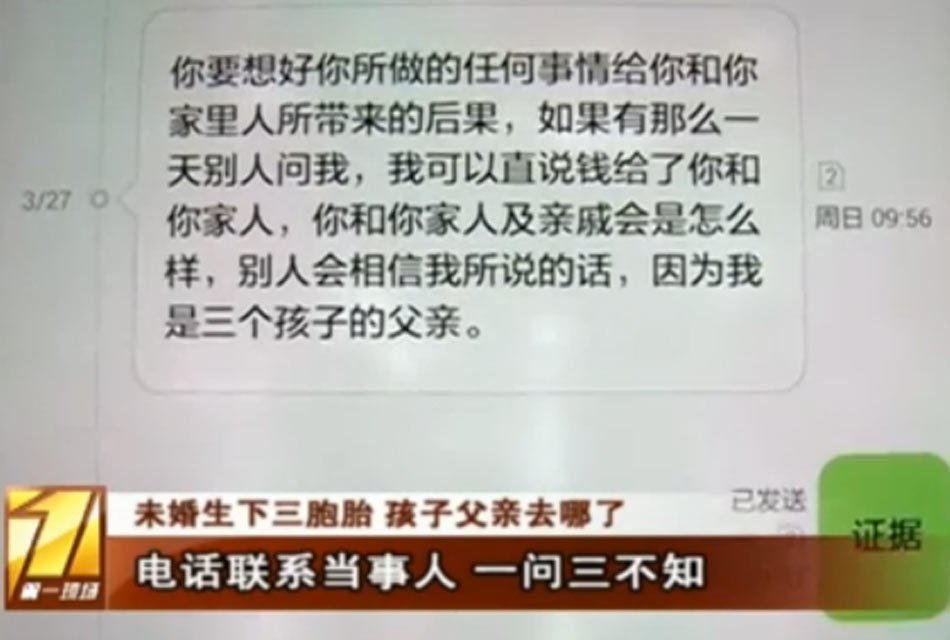 根據(jù)馬先生提供的三胞胎出生證明,孩子父親一欄中寫的就是呂先生的名字,就是這個公司的總裁,兩個人的短信記錄上,呂先生也承認這三個孩子的身份。為了進一步核實情況,記者也聯(lián)系上這位呂先生。但對記者問什么,馬先生都說不知道。