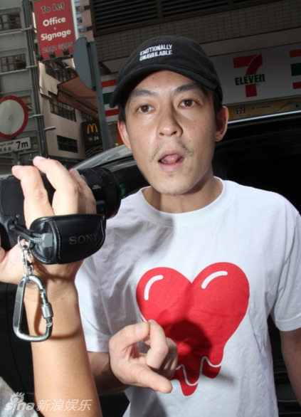 新浪娛樂訊 31日下午,陳冠希同女友秦舒培現(xiàn)身酒店。記者問秦舒培是否未離婚,秦沒有回應(yīng),而陳冠希即上前,手機反拍記者,又趨前想吻記者相機,又做V字和粗口手勢。