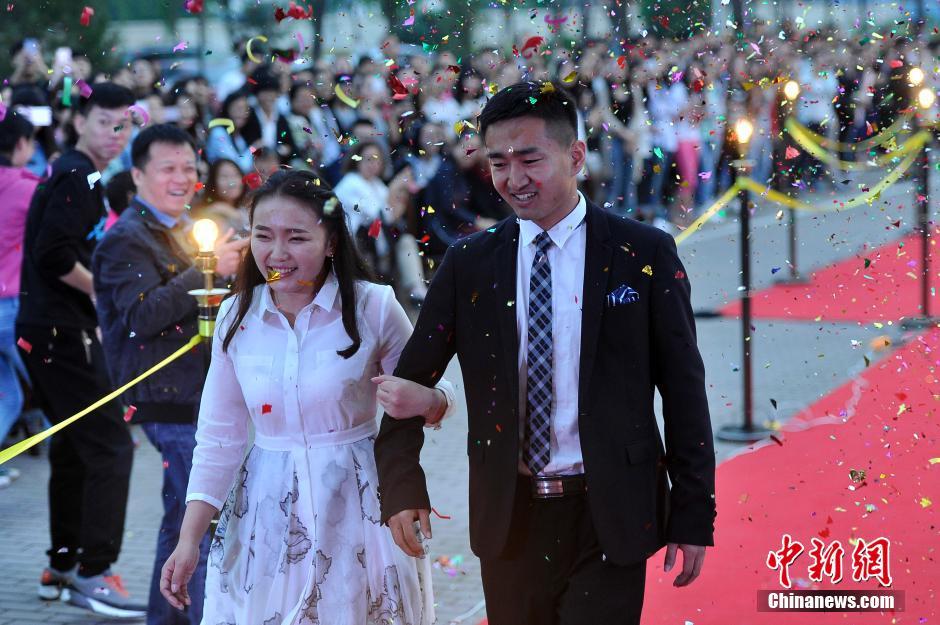 6月3日晚,山西大學美術學院畢業(yè)典禮,大學畢業(yè)生通過紅地毯走進會場,學弟學妹們夾道歡迎。當畢業(yè)生情侶一起走秀時,引起學弟學妹們一陣尖叫。韋亮 攝