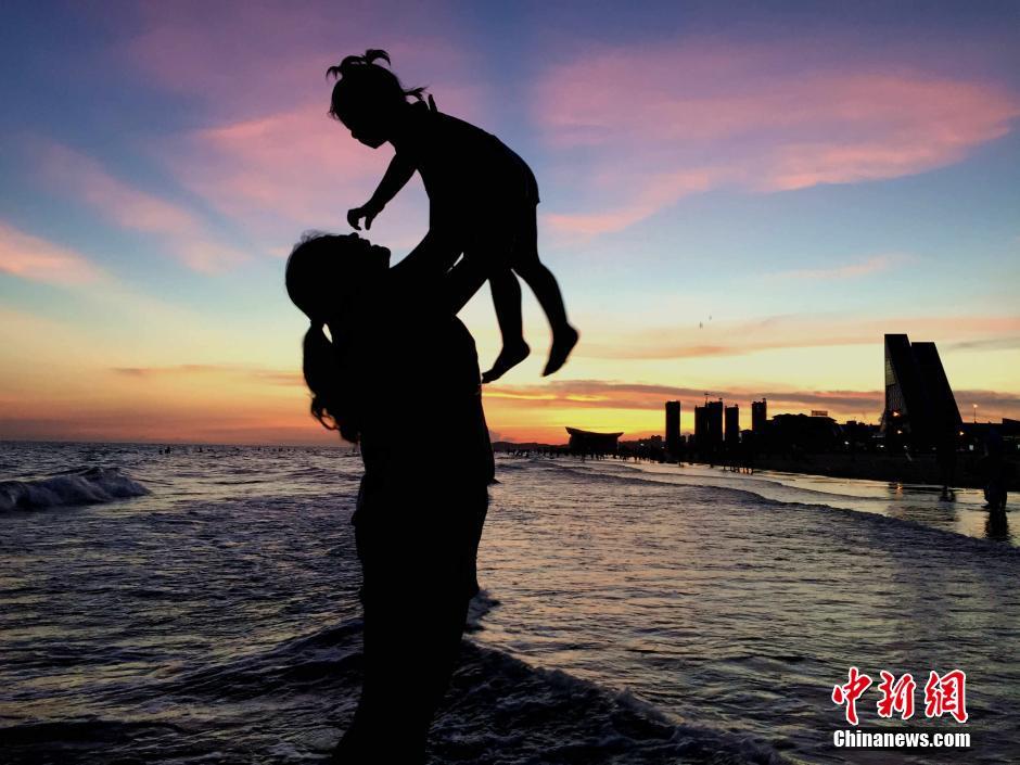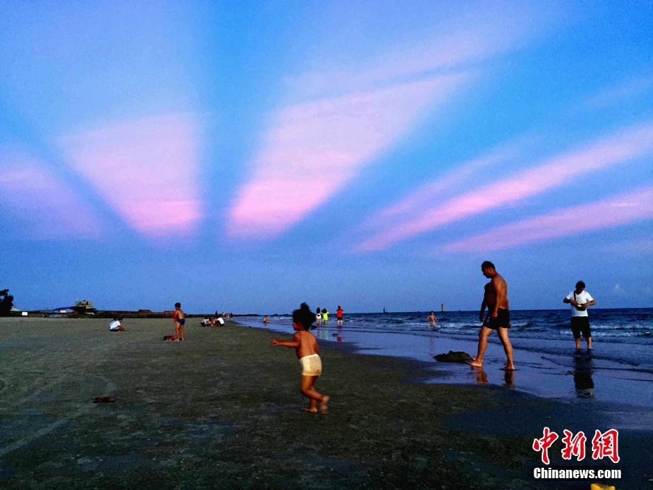 6月27日,廣西北海僑港海灘現(xiàn)晚霞奇觀。受副熱帶高壓影響,廣西連日持續(xù)高溫天氣,而高溫“燒”出的晚霞美景美不勝收,不少市民和游客趁傍晚時間趕海消暑,一并欣賞迷人晚霞。據(jù)廣西氣象臺預(yù)計,未來幾天高溫持續(xù),28日將進入本次高溫的最強階段。中新社記者 翟李強 攝