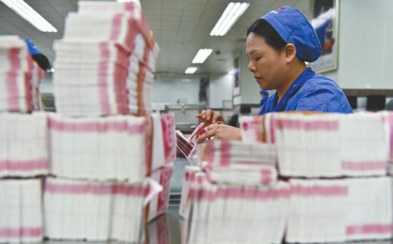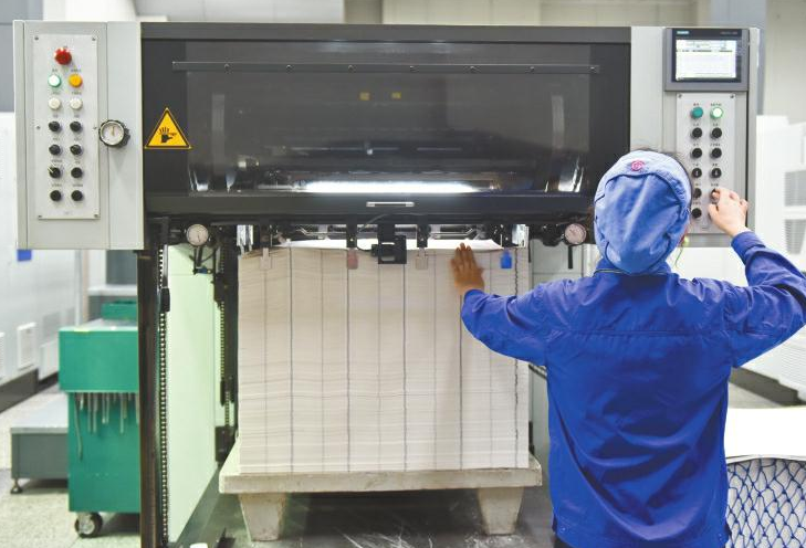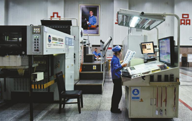 成鈔公司大門口,緊握槍支的武警駐守,在這里,有著嚴(yán)密的安檢措施。在經(jīng)過層層申報(bào)審批,暫存隨身攜帶的手包和手機(jī)后,記者獲批進(jìn)入生產(chǎn)車間。瞬間,靜謐被機(jī)器的轟鳴代替。在車間內(nèi),穿著藍(lán)色工裝的工人正有序忙碌著。在這里經(jīng)過多道印鈔工序及干燥、檢驗(yàn)等環(huán)節(jié)后,一張張雪白的印鈔紙“搖身一變”,成為紅紅綠綠的鈔票,整個(gè)過程前后需要耗時(shí)1個(gè)月左右。