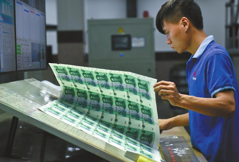 印鈔是一個(gè)精密的生產(chǎn)過程。據(jù)了解,印刷車間內(nèi)的氣溫必須保持恒定的工藝溫度范圍內(nèi),因?yàn)橐坏囟冗^高或過低,紙張會(huì)發(fā)生形變,使印刷圖像的位置偏移。在人民幣生產(chǎn)的全過程中,可以發(fā)現(xiàn)在每個(gè)機(jī)臺(tái)、每個(gè)工序都應(yīng)用了在線、離線質(zhì)量檢測(cè)設(shè)備,全過程對(duì)產(chǎn)品質(zhì)量進(jìn)行監(jiān)控。凹印工房里,工人小李拿著放大鏡,將凹印機(jī)里吐出的產(chǎn)品與手里的樣張認(rèn)真比對(duì)。他要檢查的內(nèi)容很多,是否有缺陷、瑕疵等等。小李告訴記者,“為確保萬無一失,還會(huì)堅(jiān)持人工抽查?!?/p>