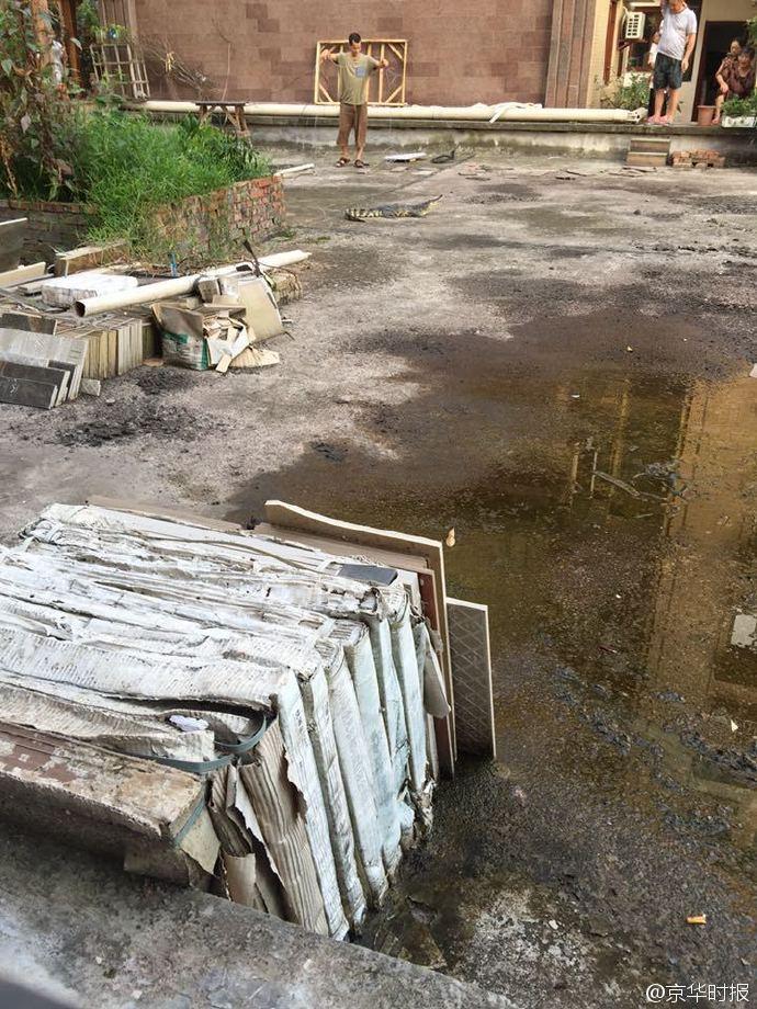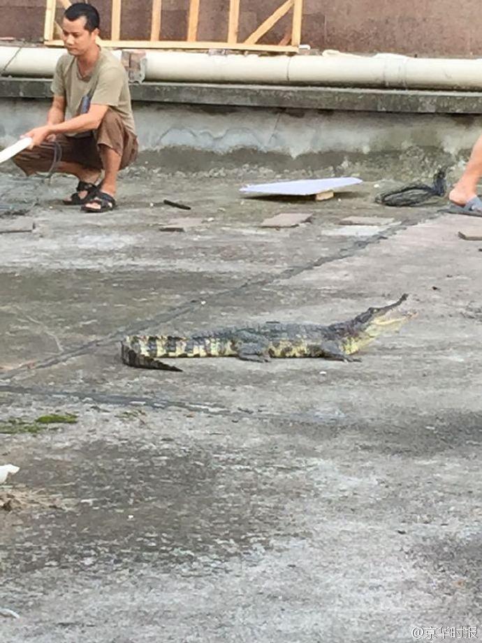 后來(lái)了解到,她家樓上5樓一住戶家里養(yǎng)了2條鱷魚,昨晚其中一條從窗戶逃跑了。