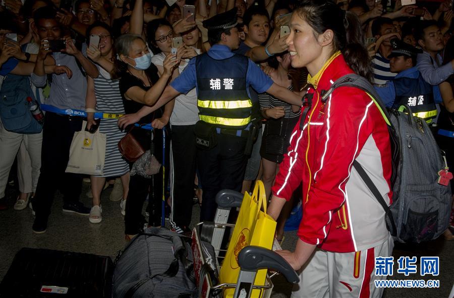 8月23日,中國女排隊(duì)員徐云麗抵達(dá)北京首都國際機(jī)場(chǎng)。當(dāng)晚,在里約奧運(yùn)會(huì)獲得金牌的中國女排回國。 新華社記者陳曉偉攝