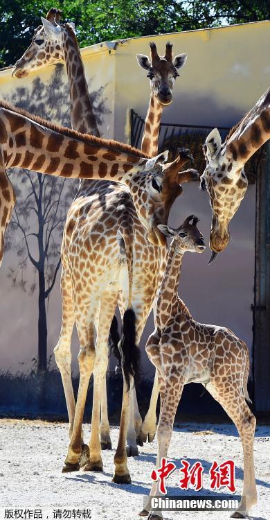 法12歲長(zhǎng)頸鹿誕下“寶寶” 垂眼吻子母愛(ài)濃