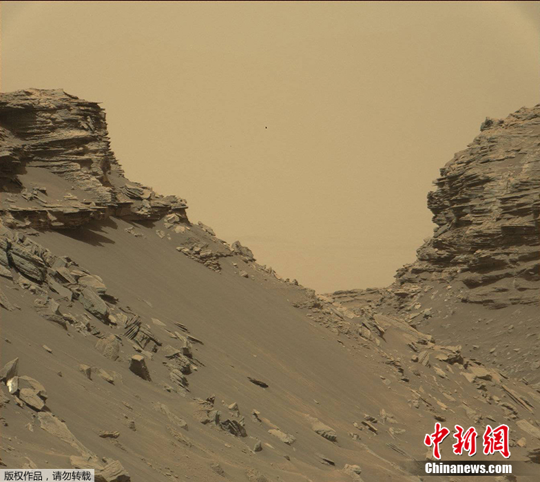 NASA形容,“好奇號(hào)”仿佛進(jìn)行了一趟“橫越美國沙漠的公路之旅”。影像中,火星上有著與地球景觀相似的崎嶇山壁。