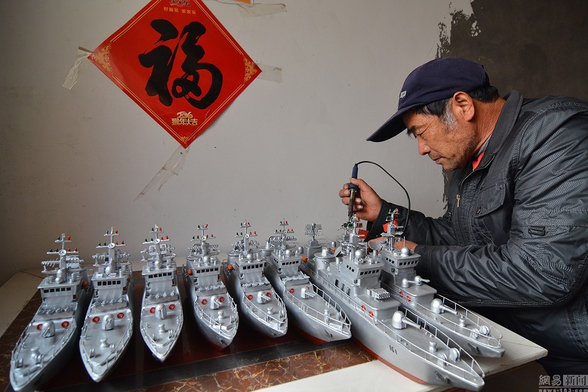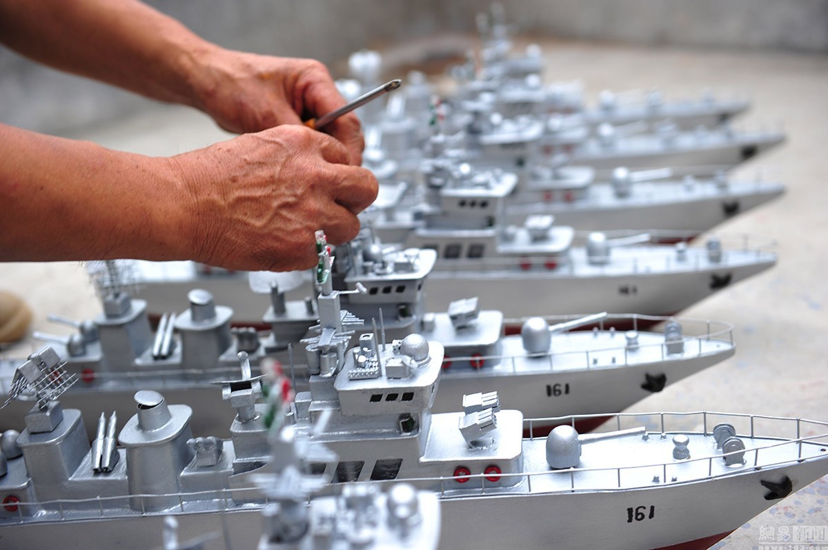 1月9日,今年59歲的郭長海,是山東省日照市山海天旅游度假區(qū)肖家村一位普通的漁民。從2005年開始,他自己純手工制作“軍艦”模型,可以說是到了癡迷的程度。十幾年來,他先后花費(fèi)近6萬多元人民幣,造出了7艘可實(shí)現(xiàn)模擬槍炮發(fā)射的“軍艦”模型,十幾艘小軍艦?zāi)P?。幾年來,因為他的癡迷,郭長海也成為網(wǎng)絡(luò)、報紙、電視,以及自媒體等關(guān)注報道的對象,成為“網(wǎng)紅”。