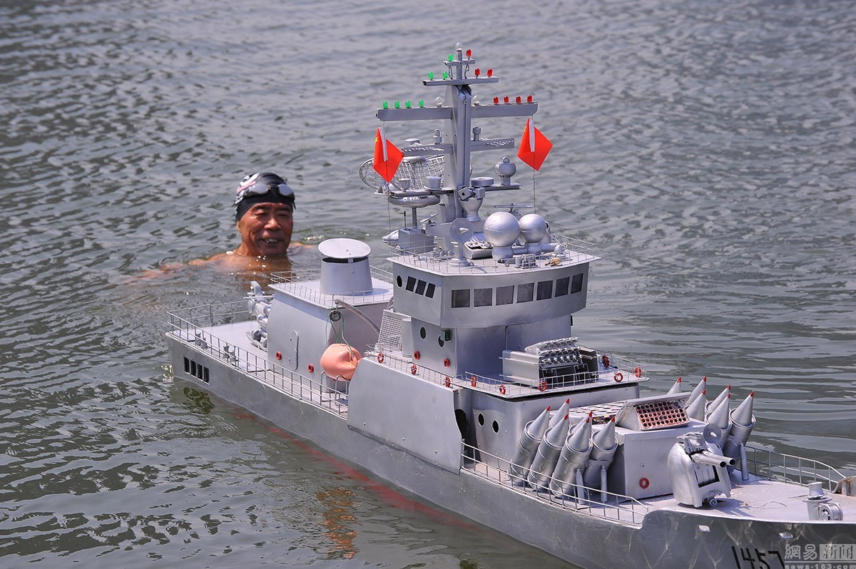 十幾年來,他先后成功的造出了“導(dǎo)彈驅(qū)逐艦”2艘,“巡洋艦”4艘,“導(dǎo)彈護(hù)衛(wèi)艦”1艘。2014年12月13日,郭長海將半年時間打造的新作“導(dǎo)彈護(hù)衛(wèi)艦”拉到村里的大街上向村民展示,這艏長3.07米,高1.2米,寬約0.8米的“導(dǎo)彈護(hù)衛(wèi)艦”在他的遙控指揮下,成功實(shí)現(xiàn)了陸地上的前進(jìn)、后退、左右拐彎,并可模擬槍炮發(fā)射火藥的效果。為了驗證水上功夫,2015年8月13日,郭長海在日照奧林匹克水上公園龍舟碼頭,為“導(dǎo)彈護(hù)衛(wèi)艦”進(jìn)行試航,經(jīng)過半個多小時的調(diào)試,最終試航成功。連續(xù)兩年在眾人面前的試驗,均獲得成功,這大大增強(qiáng)了他的信心。
