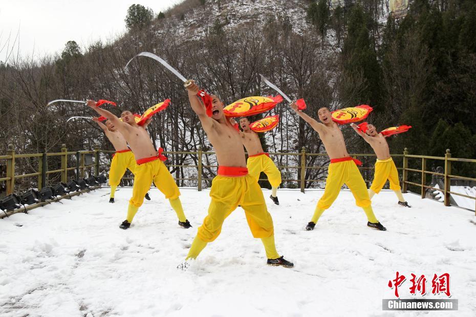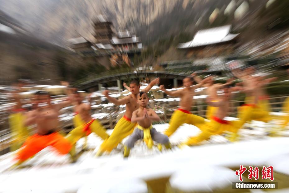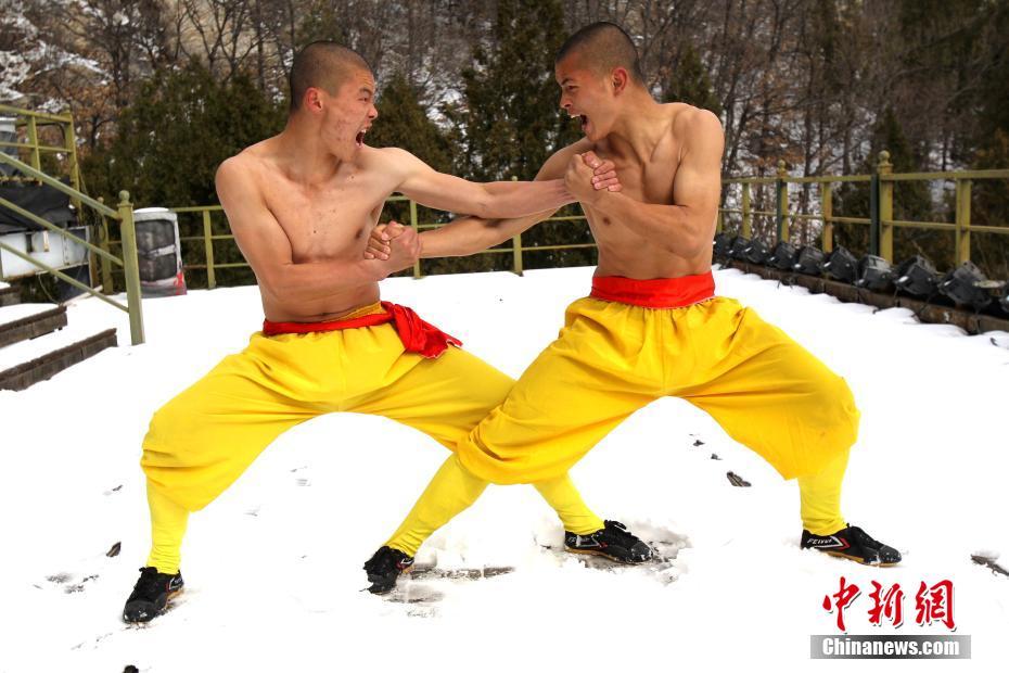 2月22日,河南出現(xiàn)暴雪天氣,氣溫驟降,少林寺所在地登封嵩山白雪茫茫,銀裝素裹,武僧們赤膊上身在冰天雪地里苦練少林功夫。盡管寒風刺骨,少林武僧們依舊照常練功,只見他們赤膊上陣,不懼寒冷,在雪窩里扎馬步、練少林棍、刀槍對戰(zhàn)。他們中間最小的只有6歲。 中新社記者 王中舉 攝