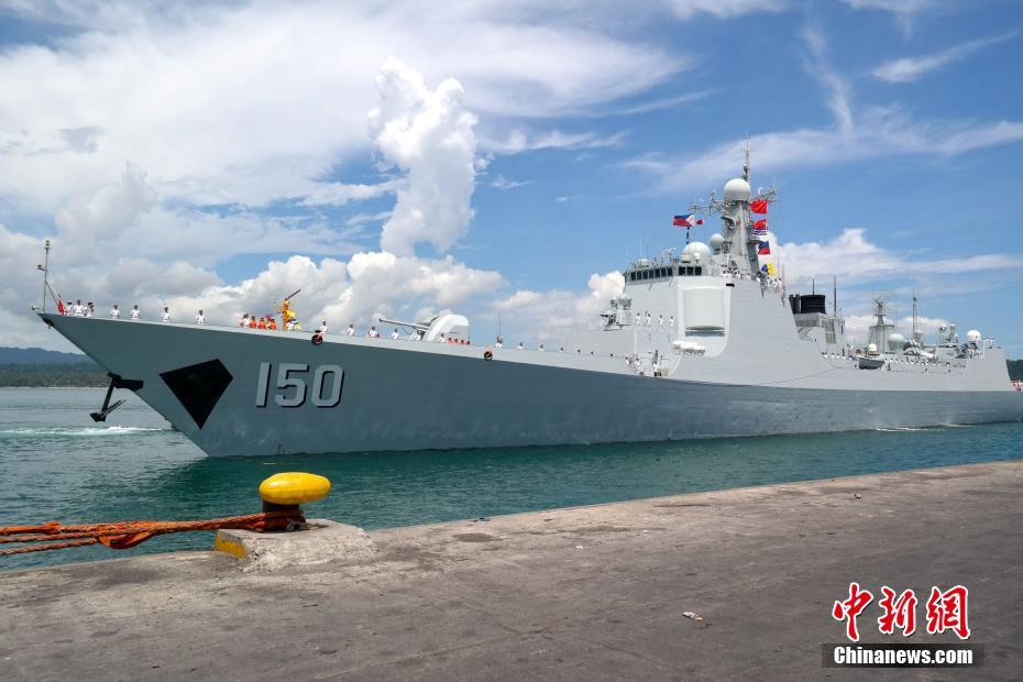 4月30日,由導(dǎo)彈驅(qū)逐艦長春艦、導(dǎo)彈護衛(wèi)艦荊州艦和綜合補給艦巢湖艦組成的中國海軍艦艇編隊抵達菲律賓南部達沃市訪問,受到熱烈歡迎。這支艦艇編隊4月23日從上海黃浦江畔啟航,將赴亞洲、歐洲、非洲和大洋洲20余個國家進行友好訪問,菲律賓是首站。圖為荊州艦靠岸。 中新社記者 張明 攝