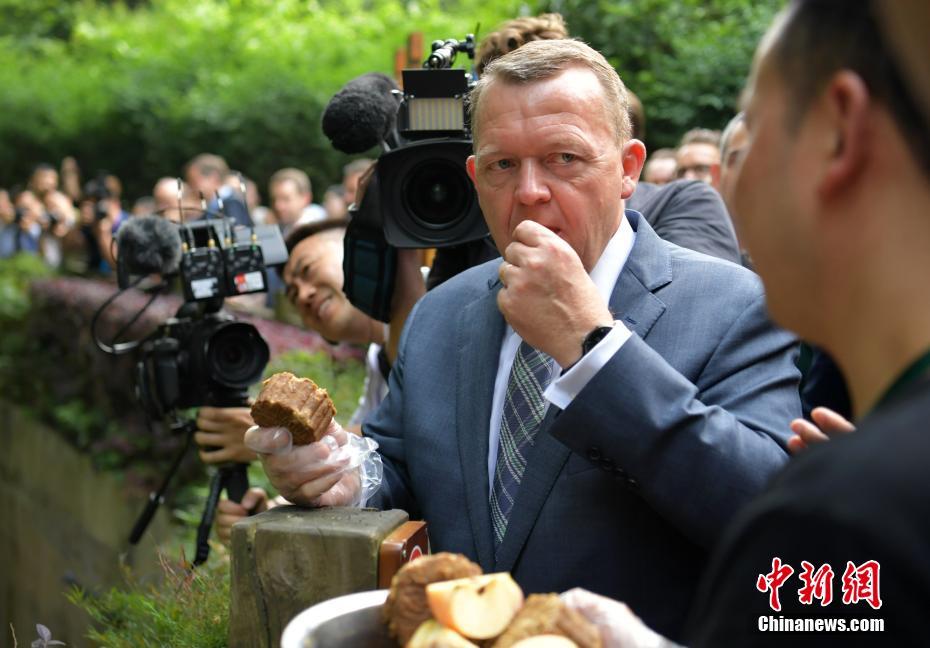 5月2日,丹麥?zhǔn)紫嗬鼓律勾笮茇埑蕴O(píng)果。當(dāng)日,應(yīng)中國(guó)國(guó)務(wù)院總理李克強(qiáng)邀請(qǐng),丹麥?zhǔn)紫嗬鼓律D行抵達(dá)中國(guó)成都,開(kāi)始對(duì)中國(guó)進(jìn)行正式訪問(wèn),拉斯穆森此訪系其2015年當(dāng)選首相以來(lái)首次訪華,其訪問(wèn)首站就來(lái)到四川成都。中新社記者 劉忠俊 攝