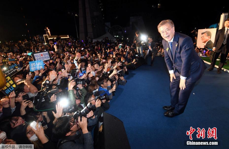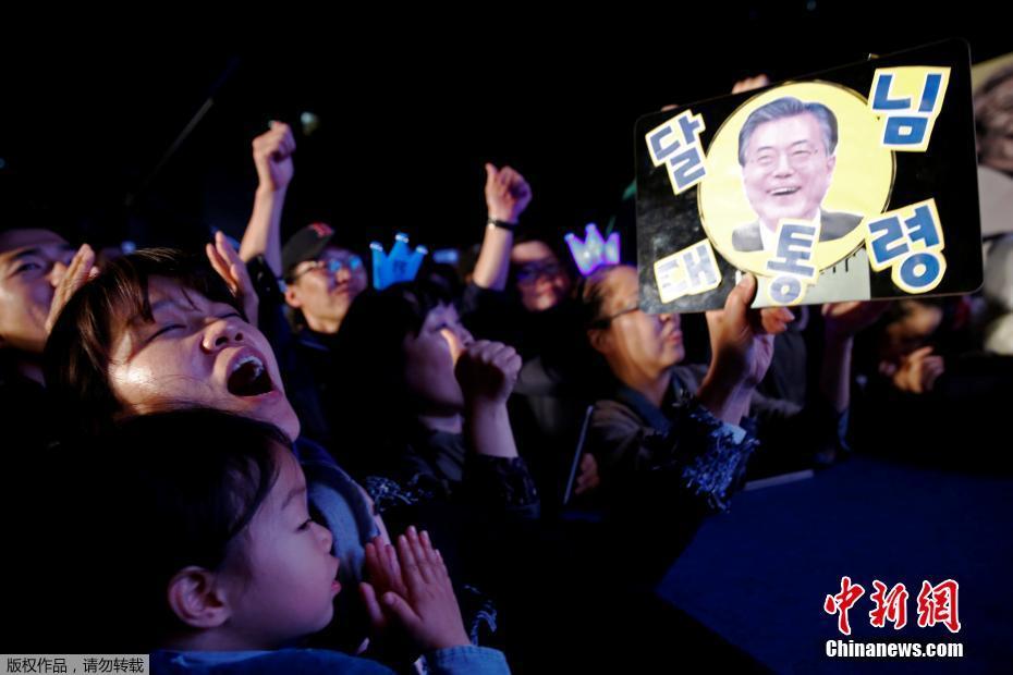 當(dāng)?shù)貢r(shí)間5月9日深夜,韓國(guó)第19屆總統(tǒng)選舉共同民主黨候選人文在寅及其競(jìng)選團(tuán)隊(duì)現(xiàn)身首爾光化門(mén)廣場(chǎng),發(fā)表“勝選演說(shuō)”,與支持民眾握手慶祝。據(jù)出口民調(diào)顯示,文在寅在當(dāng)日進(jìn)行的大選投票中以41.4%的支持率絕對(duì)優(yōu)勢(shì)勝選。在選舉管理委員會(huì)公布的大部分開(kāi)票結(jié)果中,文在寅得票率也遙遙領(lǐng)先,提前鎖定勝局。