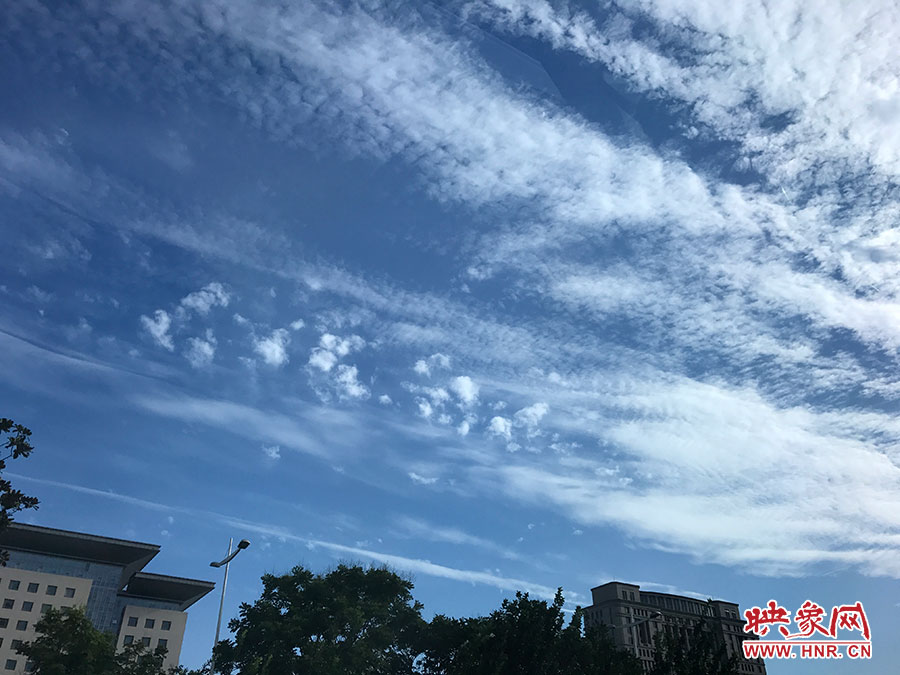 立秋大雨過后,8月8日清晨時(shí)分,鄭州上空出現(xiàn)美麗的魚鱗云,讓人沉醉,讓人興奮。抬頭45度,仰望天空,鬧市與清澈只有一顆心的距離……