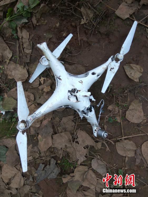圖為被老虎擊落的無人機殘骸。王成杰 攝
