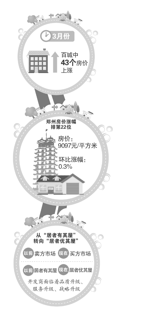 鄭州3月份房?jī)r(jià)9097元/平方米,較上月小漲