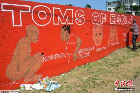 當?shù)貢r間9月8日,在利比里亞,蒙羅維亞街頭,一名叫斯蒂芬·多伊的藝術家在墻上創(chuàng)作壁畫向人們介紹致命的埃博拉病毒病發(fā)癥狀。世界衛(wèi)生組織8日發(fā)出警告,利比里亞已經成為西非受埃博拉疫情肆虐最嚴重的國家,該國因疫情死亡的人數(shù)已經占整個西非發(fā)病死亡人數(shù)的一半以上。