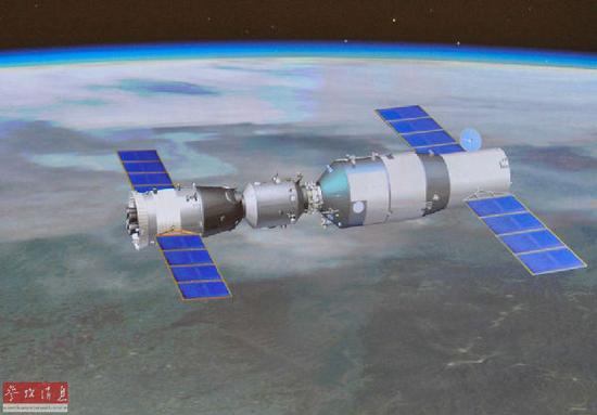 資料圖:神舟十號(hào)與天宮一號(hào)自動(dòng)交會(huì)對(duì)接成功的模擬畫(huà)面。