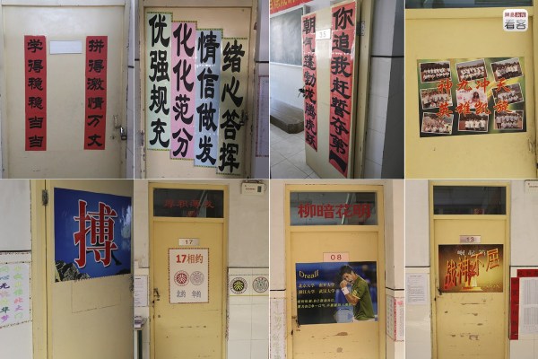 在校方的壓力之下,學生們自己也開始以不同方式給自己、給同學打雞血、互相勵志。圖為學校的“門文化”。