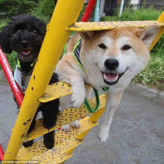 Uni-Chan今年6歲,現(xiàn)與主人居住在東京。據(jù)它的主人稱(chēng),Uni-Chan每天都會(huì)去戶(hù)外散步兩三個(gè)小時(shí),它尤其喜歡高的地方以及各種游樂(lè)場(chǎng)設(shè)施。除了蕩秋千,這只小柴犬還喜歡玩蹺蹺板、爬繩子,或是帶著草帽與它的好朋友——一只黑色的貴賓犬嬉戲。