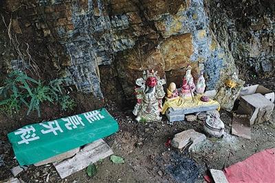 從山腳到山頂,“奶奶”分布在十余個地方,有的“奶奶”神像棲身于殿廟內,有的“奶奶”神像安置在藍色彩鋼搭建的簡易棚子中,有的“奶奶”神像則是露天擺放。