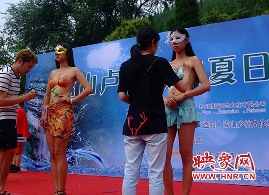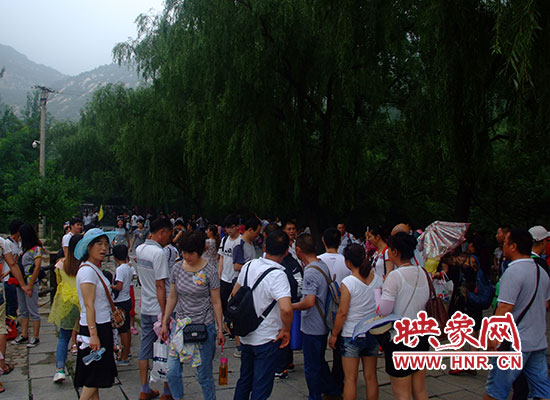 7月23日上午8點(diǎn)鐘的,嵩山盧崖瀑布景區(qū)一改往日的清靜與優(yōu)雅,動(dòng)感的音樂聲陣陣傳來,通往景區(qū)的沿途停滿了大小車輛,還不時(shí)有車輛到達(dá)。