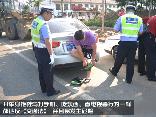 幾年前的深圳“8·23”特大交通事故,很多人可能已經不記得了:肇事人為避讓一輛搶道橫穿馬路的自行車,由于肇事人腳穿拖鞋,無法及時踩住剎車,造成了這一交通事故,一雙拖鞋害數十人喪命的悲慘事件發(fā)人深省。開車穿拖鞋與打手機、吃東西、看電視等行為一樣,都違反《交通法》,所以望廣大車主引以為戒。
