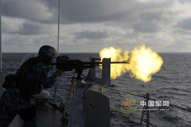 海軍第十一批護(hù)航編隊赴亞丁灣、索馬里海域執(zhí)行護(hù)航任務(wù)以來,針對海況復(fù)雜多變,海盜活動更趨隱蔽、猖獗、頻繁等嚴(yán)峻特點,編隊指揮所科學(xué)籌劃護(hù)航行動,研究掌握海盜活動的特點規(guī)律,合理安排值更執(zhí)勤,加強巡邏警戒,狠抓各項制度落實,搞好預(yù)想預(yù)測,完善多套方案預(yù)案,著力提高快速反應(yīng)能力。在查證、驅(qū)離疑似海盜船只時,確保預(yù)先發(fā)現(xiàn)、快速反應(yīng)、掌握主動,把兩個“百分之百”要求落到實處。圖為3月下旬編隊實施護(hù)航行動時的一組場景。