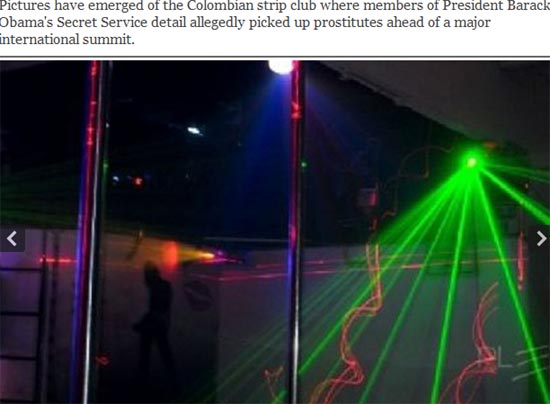《紐約每日新聞》報道稱,美國特勤局特工曾光顧這家位于哥倫比亞卡塔赫納市的名為Pley的俱樂部,一邊豪飲啤酒和威士忌酒,一邊看著舞臺上的女子跳鋼管舞,并從中選擇過夜床伴。許多特工都會帶著妓女返回下榻的卡里比酒店(Hotel Caribe),該酒店是美國特勤局、軍方以及美國記者常駐之地。